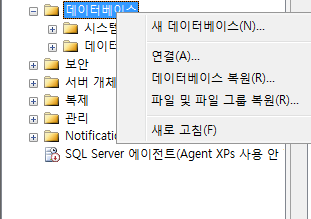 데이터 베이스를 오른쪽 마우스 클릭 → 새 데이터베이스 클릭.