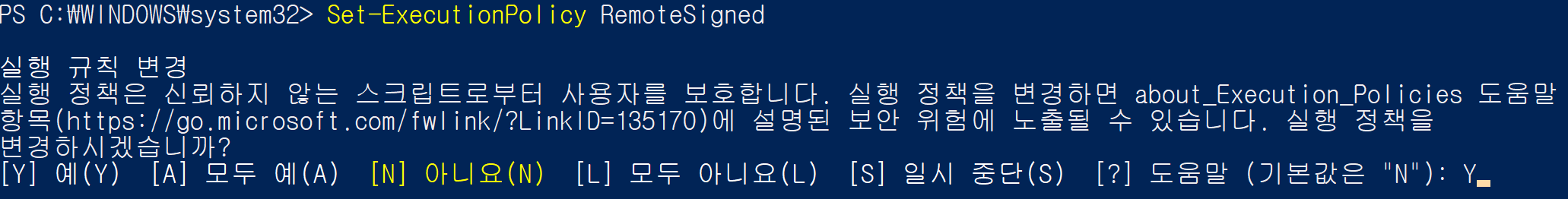 Set-ExecutionPolicy RemoteSigned를 수행한다.