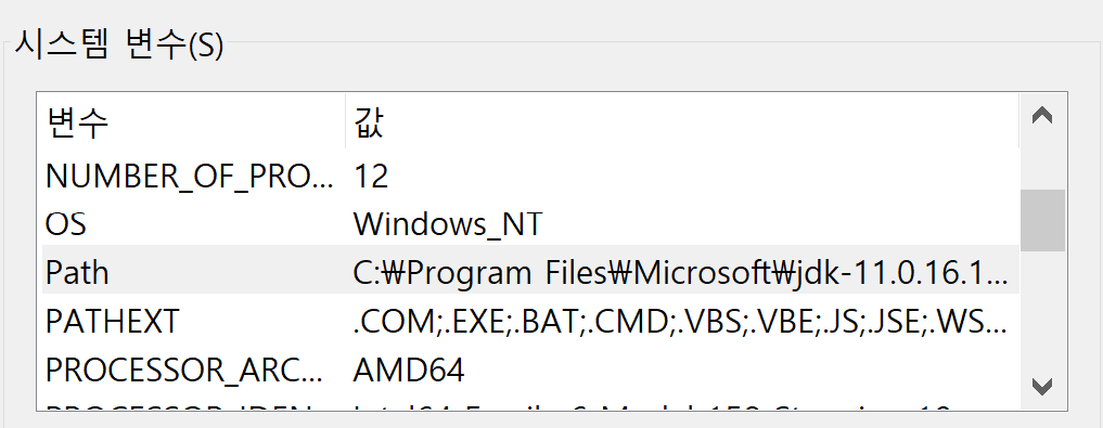 시스템 변수의 Path를 더블 클릭한다.