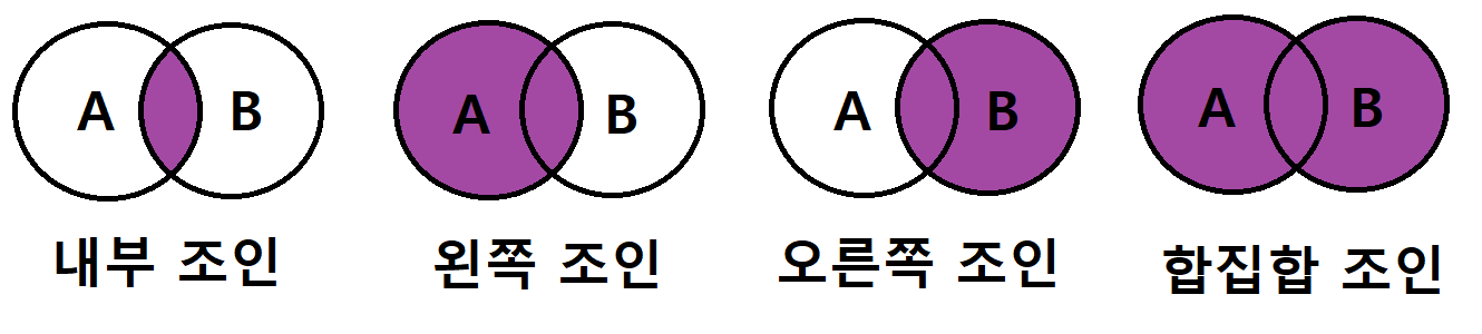 조인(Join)의 종류(내부 조인, 왼쪽 조인, 오른쪽 조인, 합집합 조인)